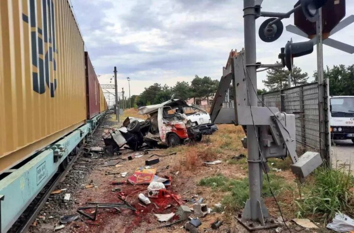 Tekirdağ'ın Muratlı ilçesinde hemzemin geçitte yaşanan kazada, bir yük treni hafif ticari araca çarptı....
