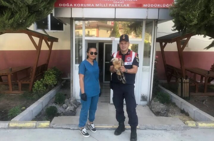 Tokat'ın Turhal ilçesinde jandarma takımları tarafından yaralı bulunan kızıl şahin, Tabiat Müdafaa ve Ulusal...