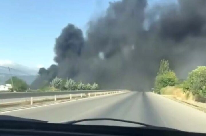 Tokat'ın Söngüt köyünde bir atık kumaş deposunda çıkan yangın nedeniyle gökyüzü siyah dumanlarla kaplandı....