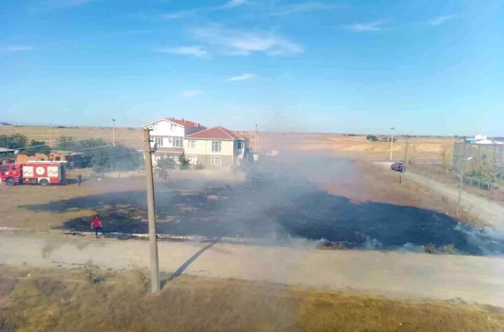 Tekirdağ'ın Muratlı ilçesinde, Kazımdirik-Turan Mahallesi Kırkkepenekli yolu üzerinde çıkan yangın itfaiye takımları tarafından denetim...