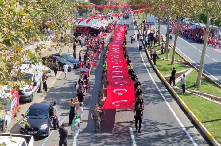 Tekirdağ'ın Süleymanpaşa ilçesinde, 30 Ağustos Zafer Bayramı'nın 103. yılı, kortej yürüyüşü ve dev Türk...